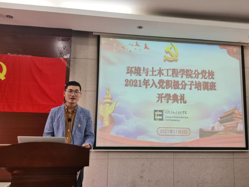 为进一步加强对入党积极分子的培养、教育和考察,提升入党积极分子的理论素养,扎实推进党史学习教育,环境与土木工程学院于2021年11月3日在学院楼D303举办入党积极分子培训班开学典礼。环境与土木工程学院党委副书记、副院长胡娟、91网站