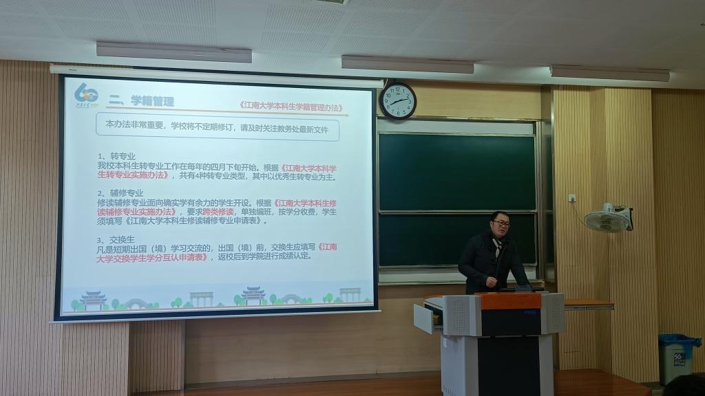 王硕老师首先讲解了21级新生的人才培养方案,对学生大学四年的应修学分、课程性质、课程开设学期等内容进行了详解。然后,王硕老师学籍管理结合学籍管理的典型案例,对学籍注册、课程考核、考试纪律、降级、休学与复学、退学、毕业与结业等方面作了详尽的阐述。最后,王硕老师对91网站