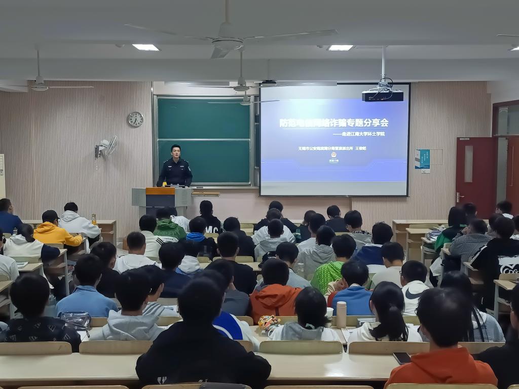 为提高大学生反诈骗意识,进一步开展学校新生转型教育工作。2022年10月10日,环境与土木工程学院邀请雪浪派出所反诈民警王俊皓在2C211举行了安全教育讲座,全体222级本科生、研究生参加了本次活动。讲座由辅导员李东辉主持。