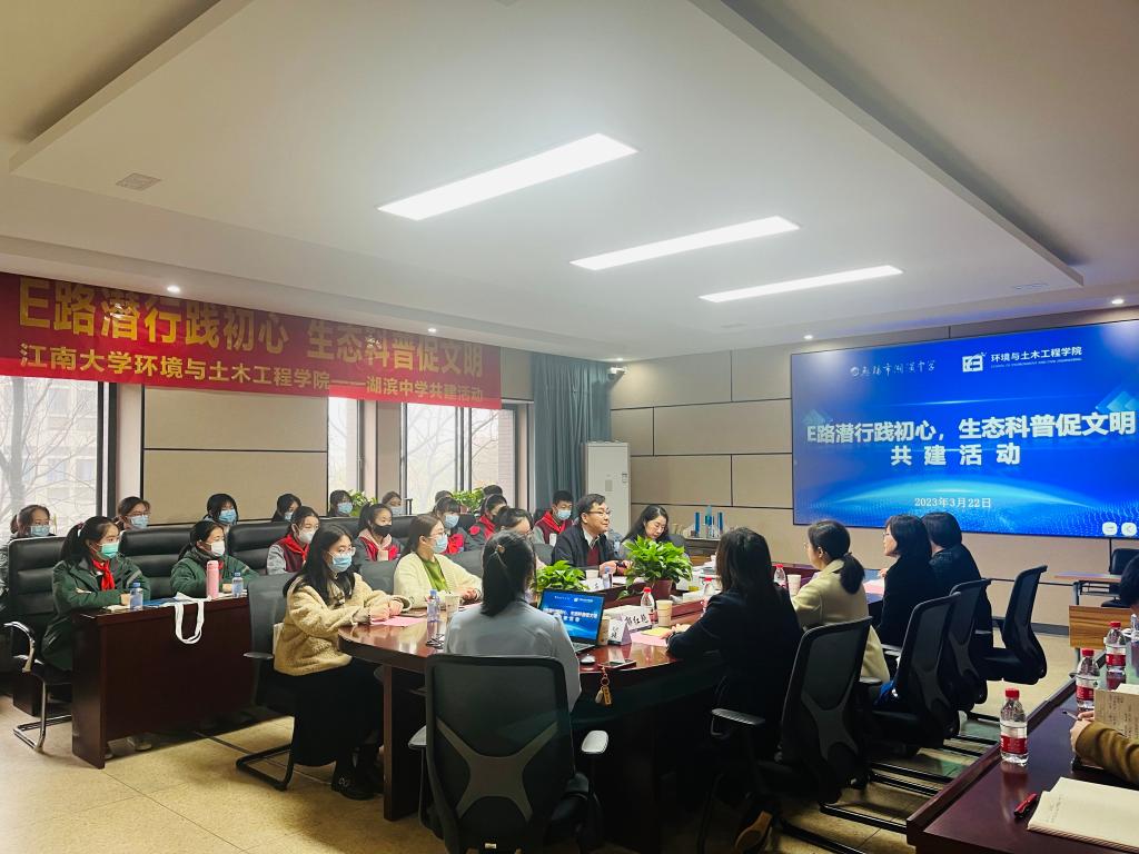 生态兴则文明兴,中国式现代化是人与自然和谐共生的现代化,必须牢固树立和践行绿水青山就是金山银山的理念,站在人与自然和谐共生的高度谋划发展。2023年3月23日,环境与土木工程学院与无锡市湖滨中学在学院楼D305开展“E路潜行践初心,生态科普促文明”主题共建活动,无锡市湖滨中学党委书记 夏敏、办公室副主任兼党支部书记夏益稚、团委书记兼大队辅导员华芳,91网站