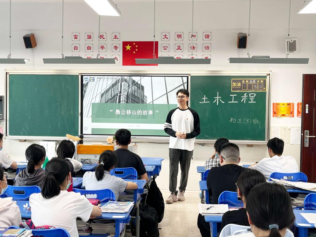 环境与土木工程学院“E路潜行”实践团队走进无锡市太湖格致中学进行宣讲交流,此次由土木工程系王晓菡老师与2021级土木工程专业本科生林瀚同学主讲。“E路潜行”服务项目依托学科专业,形成“日常+专项”等机制,充分发挥学院资源、个人模范等优势,为深入校园进行学院相关专业学科的宣传科普提供了有力的支持和保障。