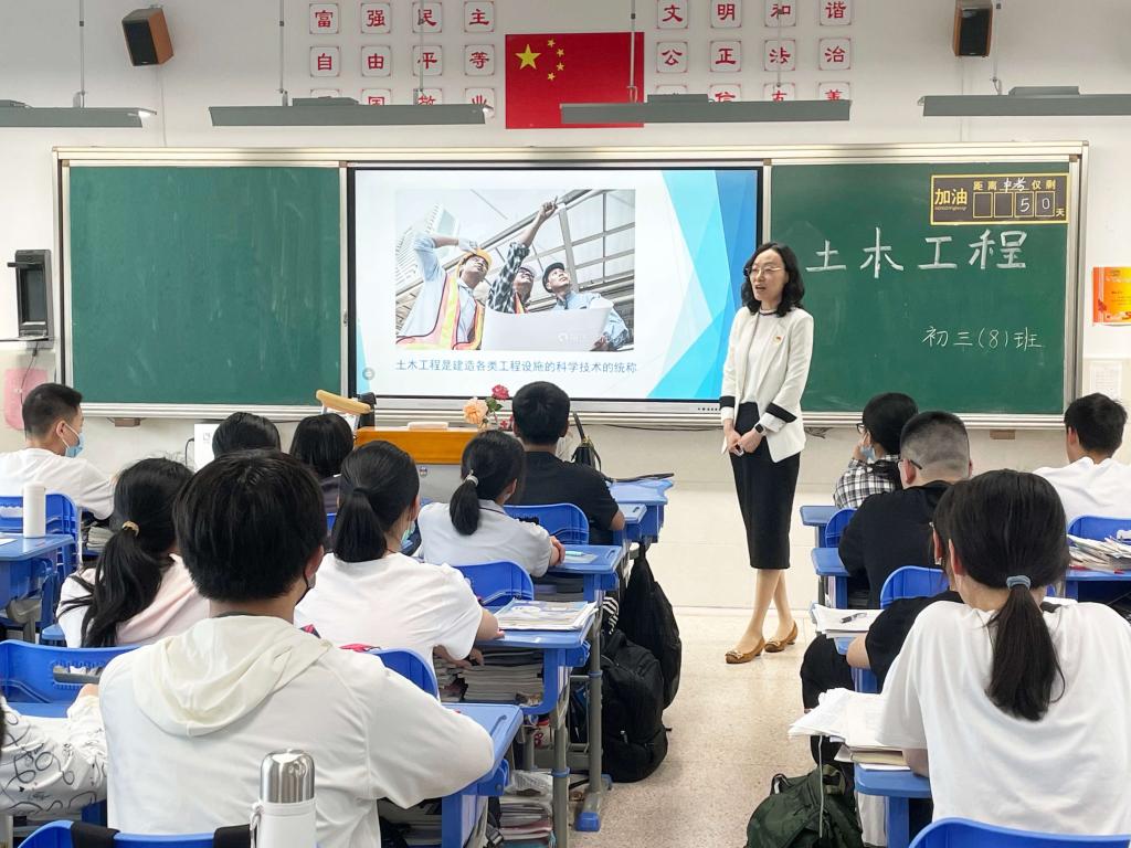 首先,王晓菡老师进行土木工程专业介绍,主要包括专业方向设置,专业特点,就业去向以及作为土木工程师需要具备的能力和素质。她勉励同学们树立远大理想,建设美好家园。随后,林瀚向格致中学的同学们介绍自己进入大学阶段的学习、参加的各项活动,取得的各项成果;分享自己曾经备战中考和高考的经历、经验、体会,激励在场的各位同学要努力学习,坚定理想信念,点燃理想之火。最后,在互动交流阶段,王晓菡老师和林瀚同学就同学们所关心的中考复习、高中学科学习、大学学科竞赛以及课外活动等方面进行了答疑,并结合自身经历为大家提出相关建议。