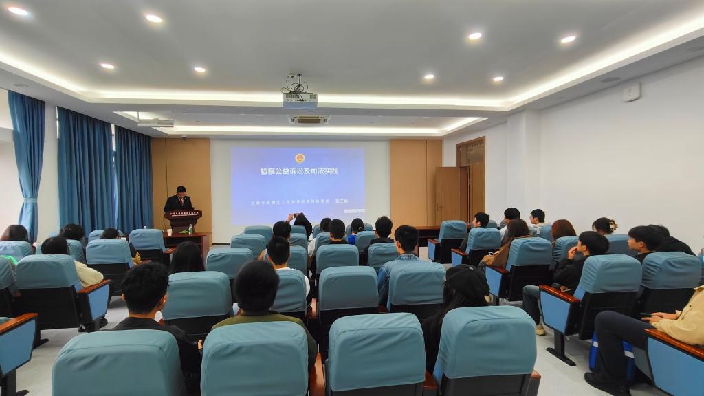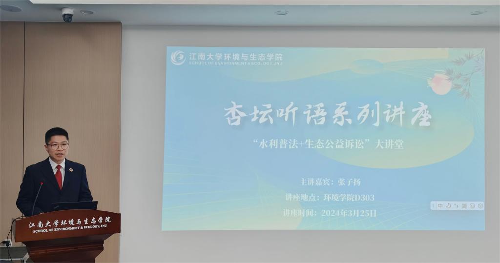 于学院楼D303开展杏坛听语“水利普法+生态公益诉讼”专题讲座。此次讲座特邀无锡市滨湖区人民检察院第四检察部主任张子扬担任主讲嘉宾,辅导员李东辉主持,50余名学生参加本次讲座。