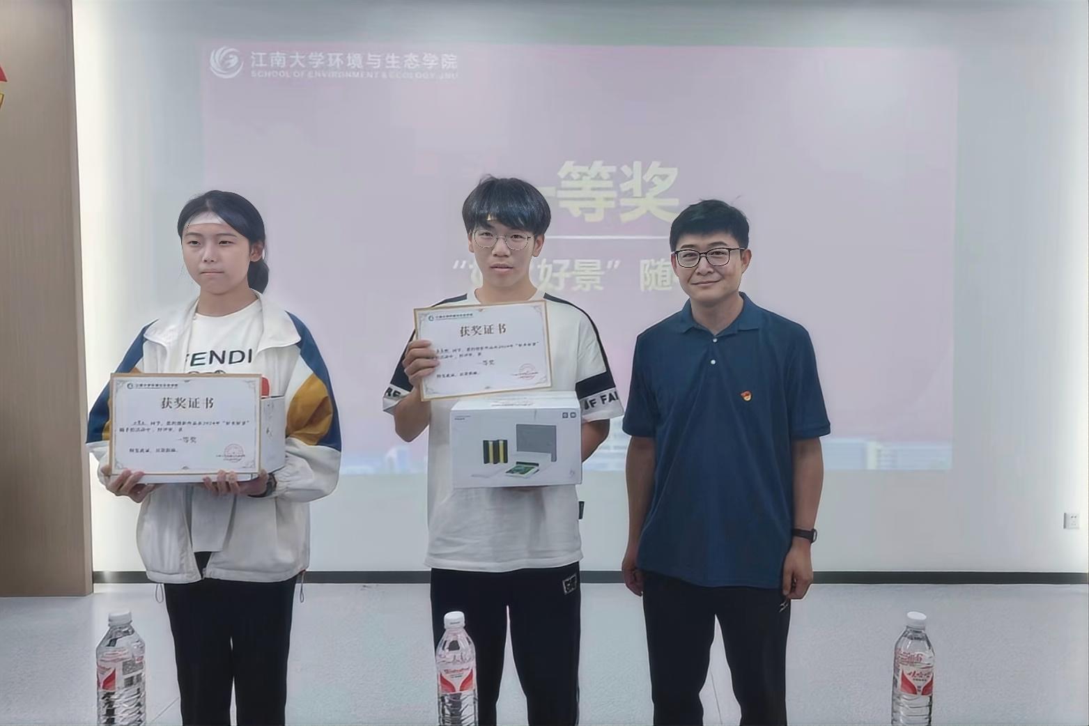 2024年的“好水好景”随手拍活动历时七天,共收到 70 余件作品,经过评委组的评选,最终评选出一等奖 2 名、二等奖 5 名、三等奖 10 名以及参与奖若干名。活动作品以影像的形式表达了对美丽河湖的认知与感受,展现了同学们对水资源保护的关注和热情,受到了广大学生的热烈欢迎。在颁奖仪式上,孙将陵、胡娟和汪向兰分别为获奖同学颁发了证书和奖品。获奖同学表示将继续关注水资源保护,积极参与相关活动,为美丽河湖的建设贡献自己的力量。