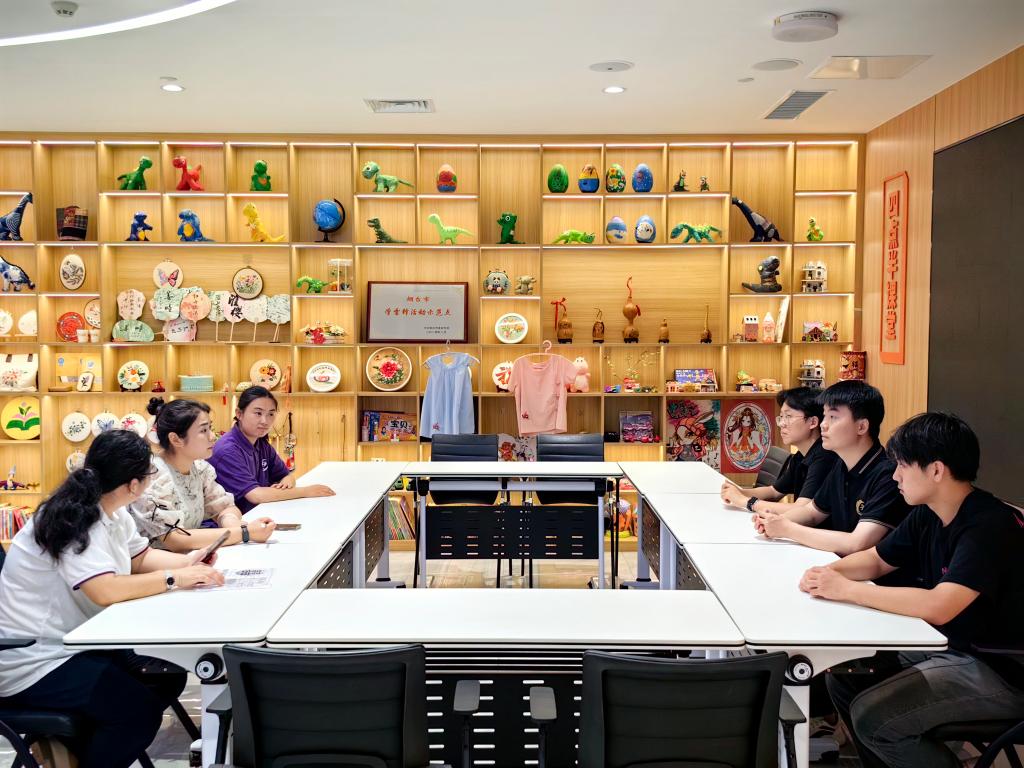在工作人员的带领下,实践团成员参观了山东省最大的秋月梨生产基地“青青大地秋月梨基地”,参观了种植区、分拣区和装箱区,学习了秋月梨从生产、加工到销售的全过程。随后,实践团来到莱阳乡村振兴赋能中心,作为全省首批、烟台首个省级衔接乡村振兴集中推进区的核心项目,莱阳乡村振兴赋能中心打造了全省乡村振兴齐鲁样板莱阳典范。在讲解员的介绍下,团队成员了解了其创新“六He”乡村振兴区域品牌发展模式,学习其三产融合、以业促兴,乡村振兴“莱阳路径”和共同富裕“莱阳经验”,对“莱阳理解、姜疃实践、人民感受”这一幸福主线产生了深刻共鸣。最后,实践团成员还化身助农主播,向工作人员学习电商直播流程,根据直播受众提前撰写脚本,掌握直播互动话术,积极在抖音、微博、小红书等各大社交平台进行宣传预热,并严格进行梨产品的选品试吃,最终确定梨羹、梨膏糖和梨膏棒棒糖作为主推产品。直播时,实践团成员主线进行莱阳梨的科普,支线进行莱阳梨产品介绍推广,从莱阳的人文历史、莱阳梨的地位、梨产品的功能效用等方面展开科普,快速提高流量,吸引了大批粉丝前来观看。
