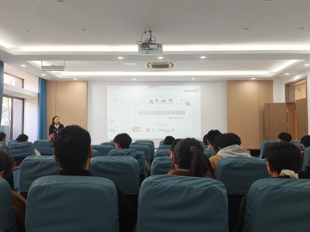 会议围绕安全提醒、舆情监控及反馈、心理委员培训、宿舍长培训四个主题展开。安全提醒涉及假期人身安全提醒、网络诈骗防范、宿舍卫生安全、食品安全等方面,旨在增强班团干部对安全问题的敏感性,提高班级同学的安全防范意识。舆情监控及反馈强调班团干部要及时反馈异常情况,做到“早发现、早介入、早化解”。周期老师在给心理委员和宿舍长培训中聚焦心理委员的角色定位、常见心理危机的识别方法与干预技巧以及和谐宿舍氛围营造,助力心理委员和宿舍长更好地服务同学。座谈环节,各班班长围绕“如何提升班级学生参与活动积极性”“如何提高学习兴趣”等现实问题与各年级辅导员讨论交流。