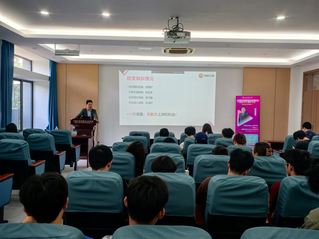 于学院楼D303开展“职来值往”讲座。本次论坛聚焦于公务员考试政策解读与选岗策略研究,特邀从事公考多年有丰富实战经验的吕洪刚老师作为主讲嘉宾。