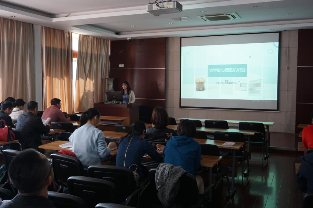 副院长邹华从实验室安全入手,提醒导师们实验室操作要规范,注意生命财产安全。同时,结合近期学校、学院的突发事件,希望导师们也要注意学生的心理状态,掌握必备的心理知识,学院邀请心理中心曾艳老师给老师们进行指导。