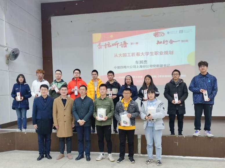 为了让同学们更好地了解今后职业走向,合理进行生涯规划,3月22日晚,环境与土木工程学院启动“致敬百年”系列讲座暨“杏坛听语”第11期、“知行合一”第6期在教学楼1C109举行。学院邀请中建四局六公司上海分公司党委副书记车其杰为同学们作讲座,辅导员薛羚伟、何涛出席,2020级全体新生参加了本次讲座。