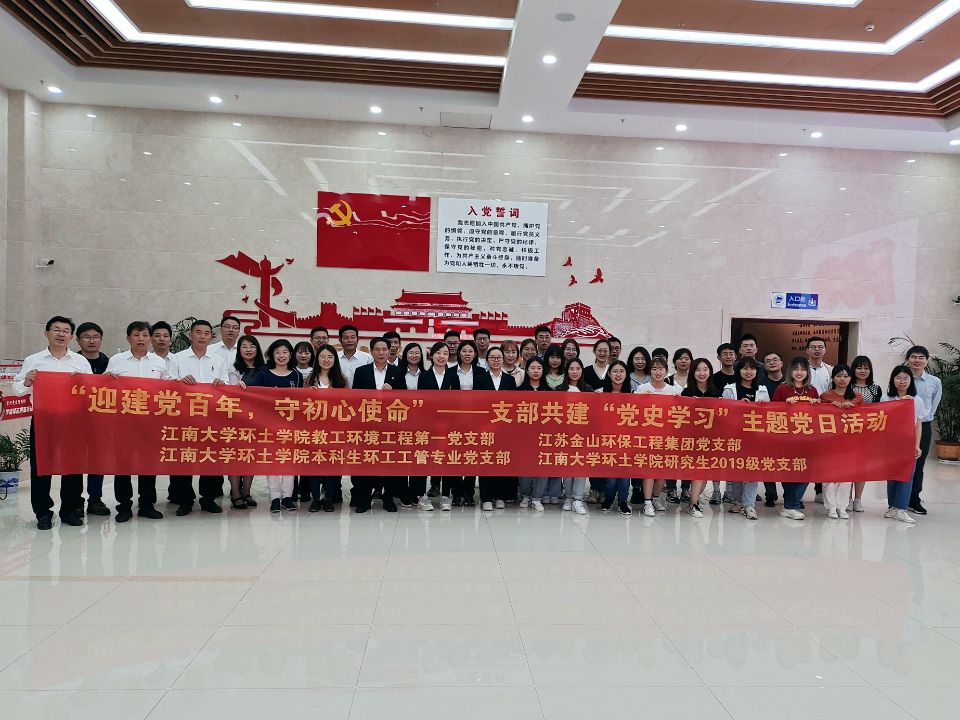 2021年是建党100周年,环境与土木工程学院围绕“致敬百年,奋斗新时代”开展了系列活动。为进一步继承和发扬党的光荣传统和优良作风,“学党史、悟思想、办实事、开新局”,环境与土木工程学院教工环境工程第一党支部、本科生环工工管专业党支部、2019级硕士研究生党支部联合中共江苏金山环保工程集团党支部共同组织开展了“迎建党100周年,守初心使命”支部共建主题党日活动。院党委副书记、副院长胡娟参加了此次活动。