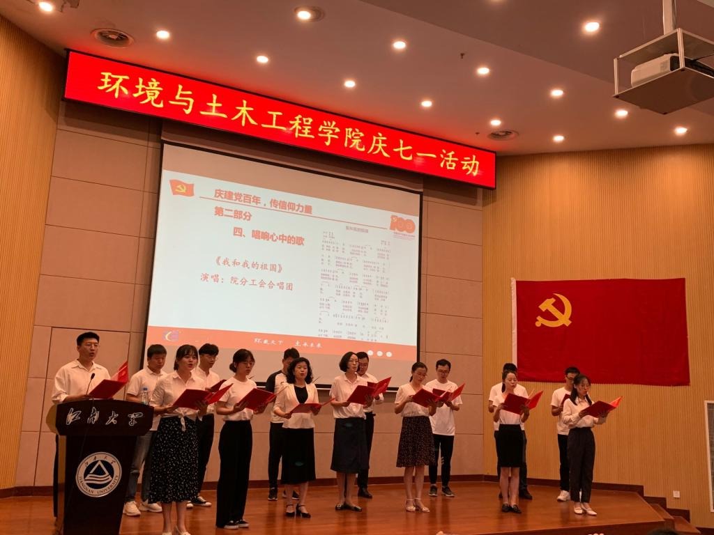 活动在《奋斗百年路 启航新征程》的铿锵诵读声中开始。由各支部党员代表组成的朗诵小组,声情并茂,带着全体与会党员,从红船出发,开启新时代的向往,加冕祖国建设的荣耀,感受着党一路带领人民创新突破,建功立业。随后在院长王震宇同志的带领下进行了新党员入党宣誓、党员重温入党誓词仪式。新党员代表2019级环境科学硕士研究生唐洁雨、毕业生党员代表林欣怡同志先后发言。她们表示将从党的百年奋斗中汲取前行力量,以昂扬奋斗姿态,在今后的学习工作中、在平凡的岗位上发光发热。院党委书记李艳同志宣读了2020-2021年度学院优秀共产党员、优秀党务工作者和先进党支部的表彰决定。院领导为16位优秀党员、5位先进党务工作者和5个先进支部颁发了荣誉证书。同时,对最佳党日活动申报支部和“对话百年,写给先辈的一封信”征文活动优秀组织支部进行了奖励。最后,院分工会合唱团深情演唱了《我和我的祖国》,把最美的祝福送给党,把深深的感恩献给祖国。