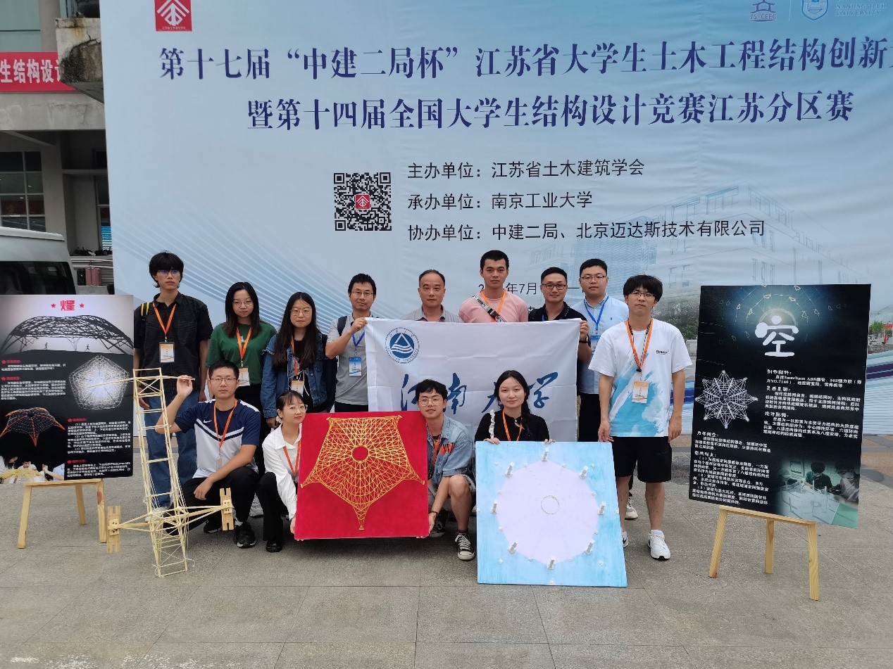 7月15-17日,第十七届“中建二局杯”江苏省大学生土木工程结构创新竞赛暨第十四届全国大学生结构设计竞赛江苏分区赛在南京工业大学举行。我校参赛队伍由环境与土木工程学院王登峰、付李、成虎老师带队,华渊教授作为特邀评委,共斩获特等奖、一等奖和二等奖各1项。鉴于我校参赛学子的优秀表现,我校与主办方南京工业大学荣获江苏省土木建筑学会颁发的最佳组织奖。