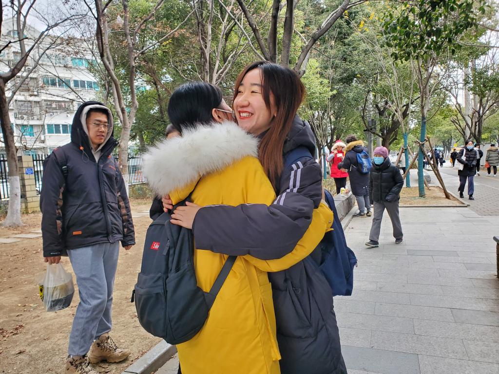 “相信自己,加油!”“别担心,抱一抱,我们始终与你温暖相随。”在学院学生各考点前,党员志愿者们举起加油板,给予拥抱,为进场的考生们加油助威。学院党委在学院学生参加考试的91网站