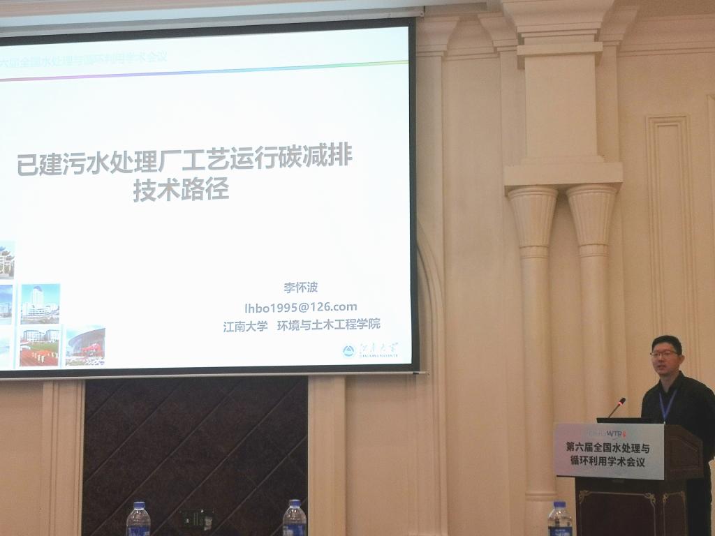 博士生李怀波同学参加本届大会并于“工艺、设备与智慧运行”分会场作了题为《已建污水处理厂工艺运行碳减排技术路径》的学术报告。报告紧贴“碳达峰碳中和”目标大背景,从太湖流域污水处理厂的碳排放现状入手,论述了现阶段污水处理厂碳减排的必要性,并结合实际案例剖析了通过优化工艺运行实现污水处理厂低碳运行的可行性,提出“污水处理厂的低碳优化路径有章可循”;此外报告凝练李激教授课题组对全国100余座污水处理厂全流程评估工作的经验,指出了当下污水处理厂设计和运行方面存在的误区,并给出针对性的优化建议。