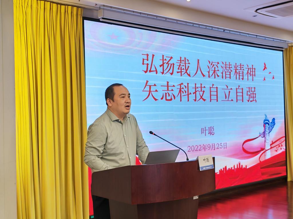 报告会上,叶聪结合自身成长经历以及“蛟龙”号、“深海卫士”号、“奋斗者”号团队潜心钻研、攻坚克难的故事,讲述了中国载人潜水器的辉煌发展历程,和党员同志们分享了严谨求实、团结协作、拼搏奉献、永攀高峰的中国载人深潜精神。叶聪带领全体党员学习习近平总书记致“奋斗者”号全海深载人潜水器成功完成万米海试并胜利返航的贺信,号召大家学习贺信精神,矢志科技自立自强,为实现中华民族伟大复兴贡献力量。