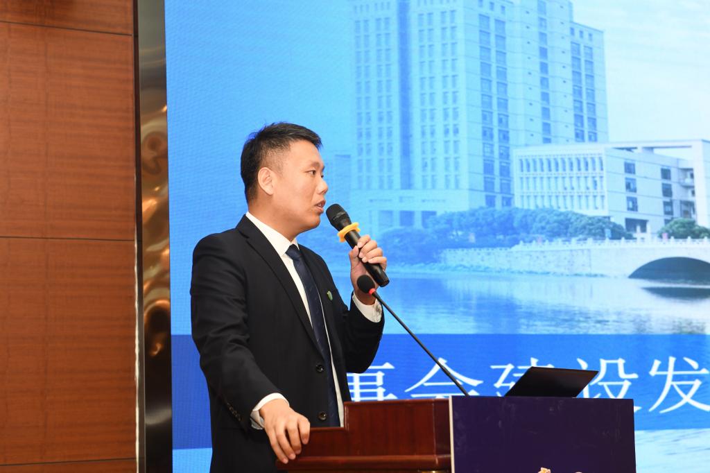 学院董事会徐韬秘书长代表董事会做发展报告。他从董事会的定位与职责、工作回顾、未来展望等方面介绍了董事会成立以来的工作成效,重点介绍了人才共育、技术互通、协同发展等方面取得的成绩,表示将进一步加强合作互促,推动实现更高质量的建设发展。