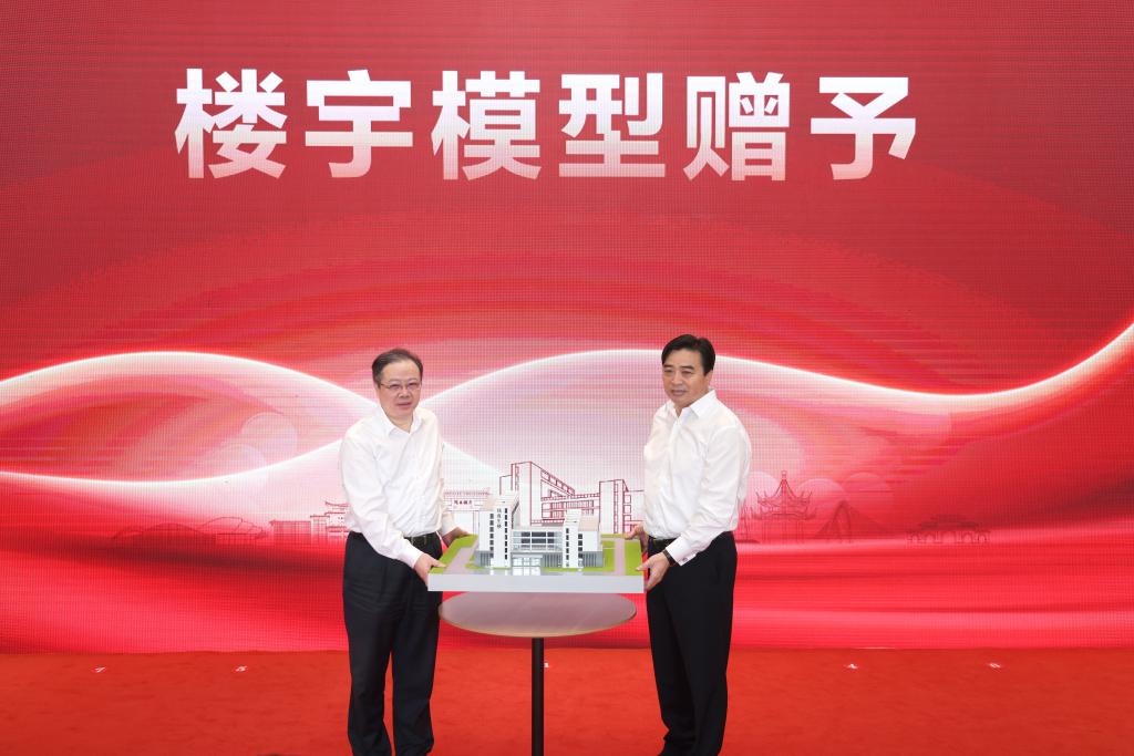 学校的快速发展离不开企业的鼎力支持,金山环保捐资助力新校区发展建设,保障优化科研条件,朱庆葆向钱盘生赠送楼宇模型。周云龙、钱盘生共同为楼宇题记揭牌。环境与土木工程学院书记、院长和徐韬分别为江苏省卓越工程师校外培养基地、党建学习教育实践基地揭牌。立足新起点,展望新未来。朱庆葆在讲话中向长期以来关心支持91网站
