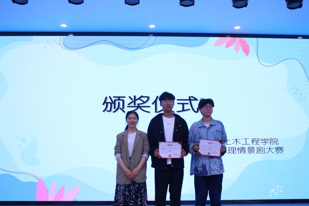 各班的选题丰富多彩,贴近校园生活,涉及到人际交往、贴标签、社恐、学业与恋爱、学习与成长等多个主题。舞台上的同学们表演收放自如,在场观众在同学们生动的表演带动下时而凝重安静,时而欢声笑语,时而掌声雷动。最终环科2201班获得一等奖,环工2202班、土木2201班分别获得二等奖,环工2201班、环科2202班分别获得三等奖。