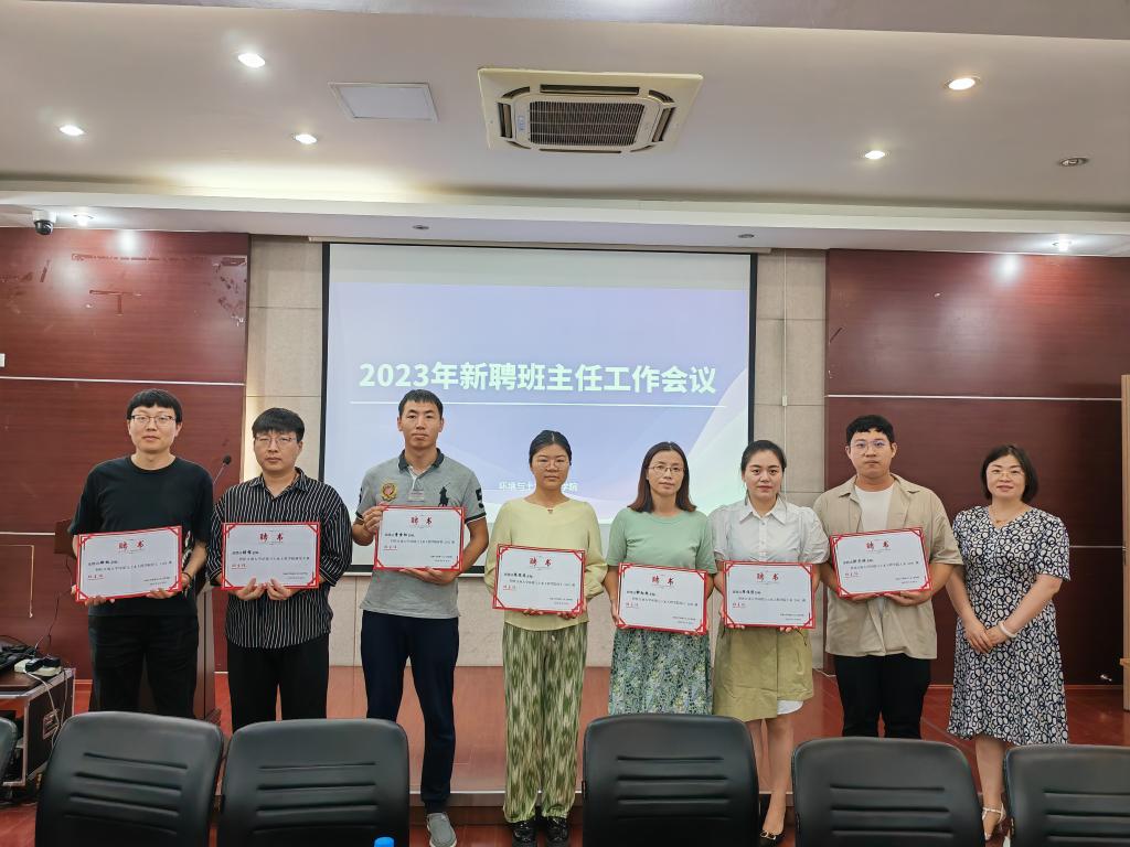 2023级辅导员刘子琪对班主任工作条例进行了简要解读。刘子琪介绍了班主任所需负责的常规工作以及考核要求。学院党委副书记、副院长胡娟为2023级新生班主任、副班主任颁发了聘书。