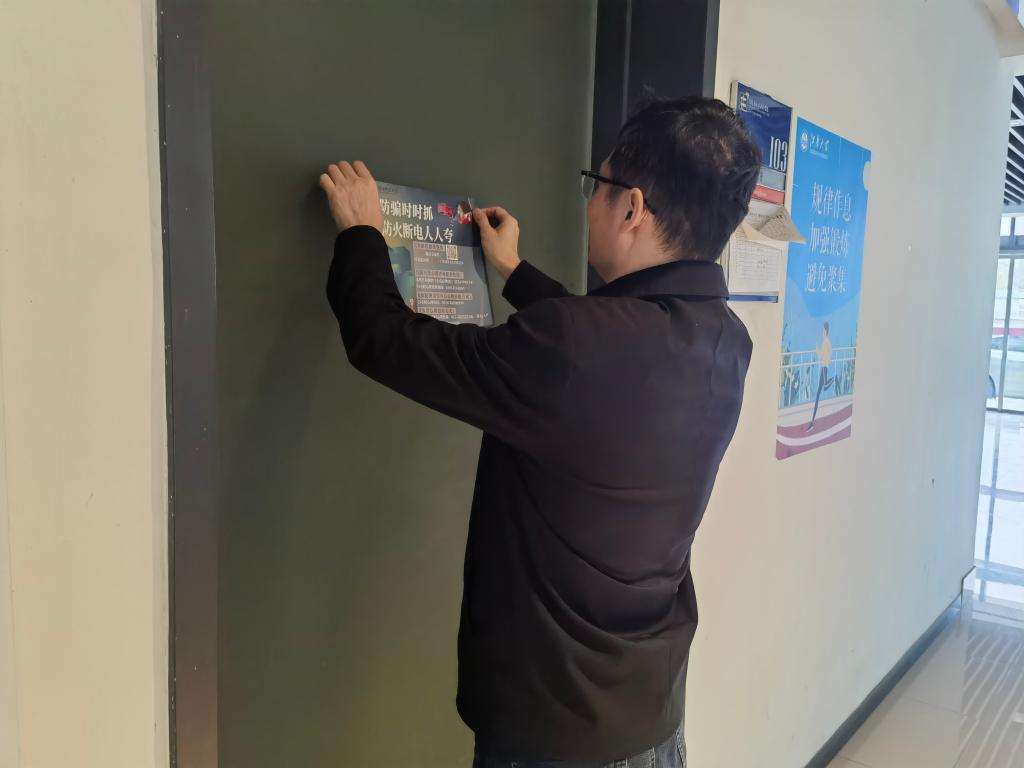 围绕着安全教育主题,学院精心设计了安全宣传海报,包括反诈指南及报警专线,校内外心理咨询服务预约方式和24小时心理热线等各类生活小提示,学院领导带头在实验室、宿舍、自习室等地张贴,提醒同学们认真学习相关安全提示。学院将以此次活动为契机,进一步加强实验室和学生管理,为实现“全员育人、全程育人、全方位育人”提供重要的安全保障。