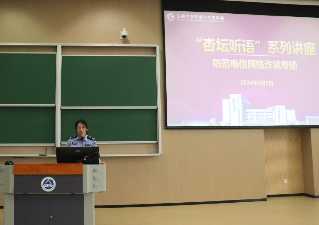 在二教2A127召开“杏坛听语”系列反诈防骗知识讲座。本次讲座由雪浪派出所民警戴警官主讲,2021级、2022级、2023级本科生参与本次活动。91网站