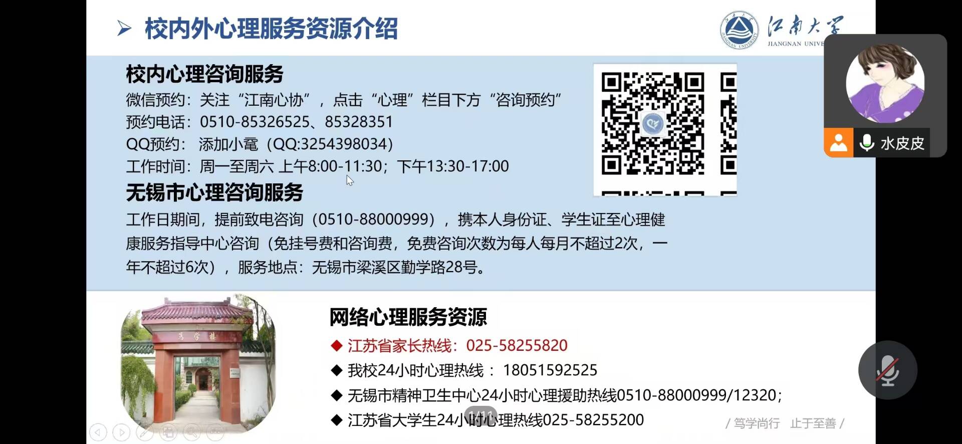 举办了“家校共育促成长”2024级新生心理家长会,讲座由学院负责心理工作的辅导员周期老师主讲。周老师重点介绍了“大学生心理发展特点与问题表现”“新生常见心理问题的家长应对方法”“校内外各类心理服务资源介绍”三个方面内容,她强调,家长朋友要积极关注学生的心理健康状况,家校双方要共同致力于孩子的健康成长与发展。
