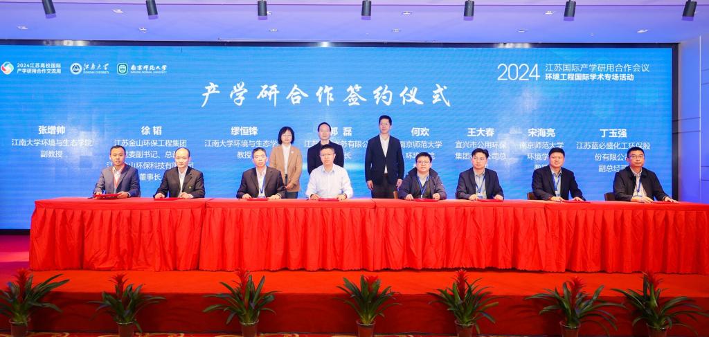 与金山环保工程集团、江苏方洋水务有限公司,南京师范大学与宜兴市公用环保集团有限公司、江苏蓝必盛化工环保股份有限公司分别签署产学研合作协议。此次签约双方本着精诚合作、优势互补、互惠互利、共同发展的原则,基于共同的发展愿景和战略需求,旨在通过资源共享、优势互补,在科技创新、人才培养和产业实践等领域展开深度合作,推动科研成果的转化和应用,为学生提供实践平台,培养更多符合市场需求的高素质人才。这不仅标志着产学研合作的进一步深化,也预示着未来更多的创新成果将不断涌现。