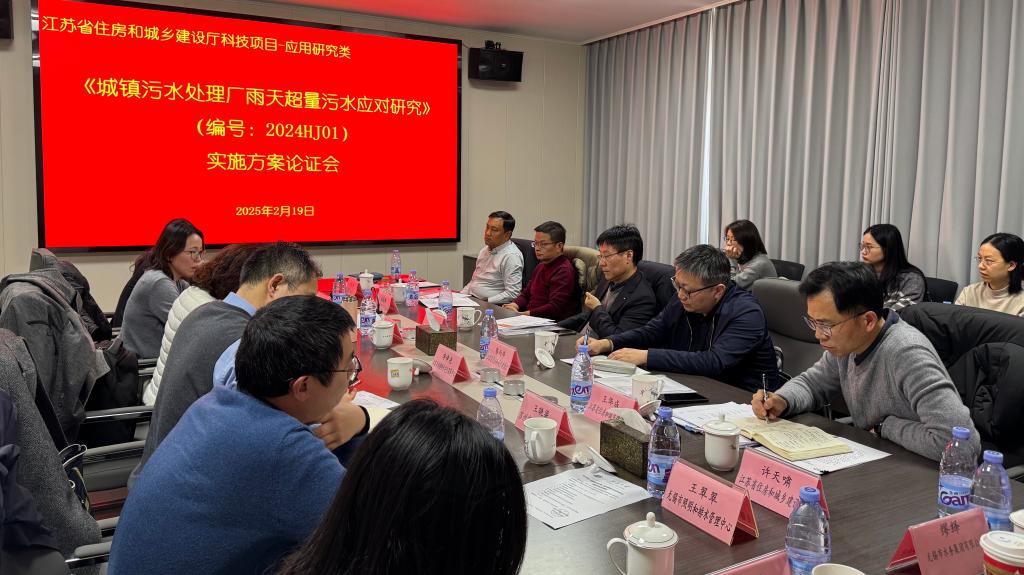 牵头的江苏省住房和城乡建设厅科技项目《城镇污水处理厂雨天超量污水应对研究》启动会暨实施方案论证会在江苏南京召开。江苏省住房和城乡建设厅绿色建筑与科技处处长蔡雨亭、城市建设处副处长王华成、城市建设处一级主任科员许天啸,南京市市政设计研究院有限责任公司副总经理兼总工程师王阿华,中持新概念宜兴环境发展有限公司总经理吴昌敏,江苏省环境工程技术有限公司水生态事业部部长孔宇,项目负责人、91网站