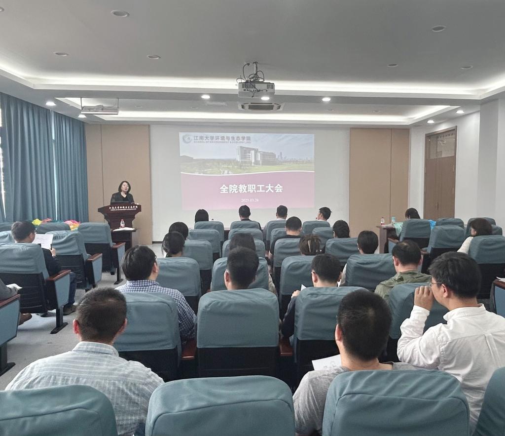 在学院楼D303召开教职工大会。会议由学院党委书记李艳主持。