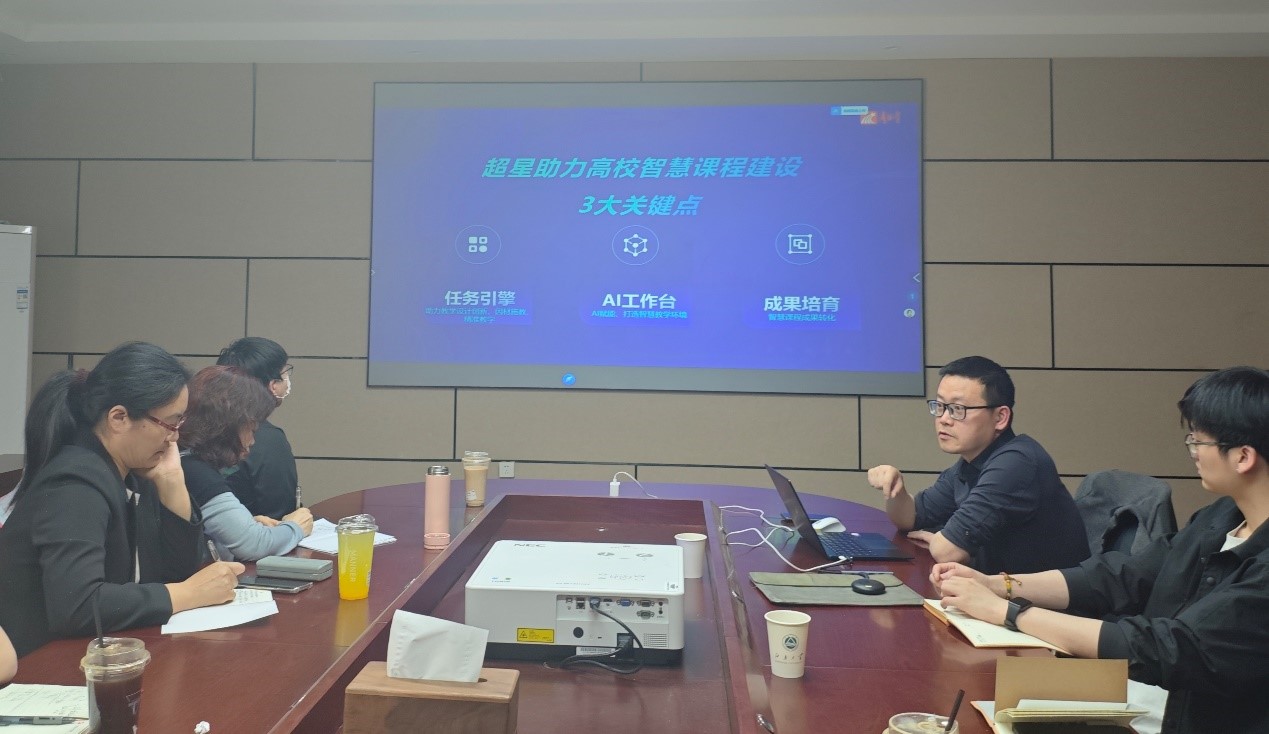 于4月16日下午在学院305会议室召开智慧教学专题研讨会。研讨会由学院副院长王新华主持,超星平台的智慧课程建设专家、一流课程项目负责人、学院骨干教师等参加了研讨会。