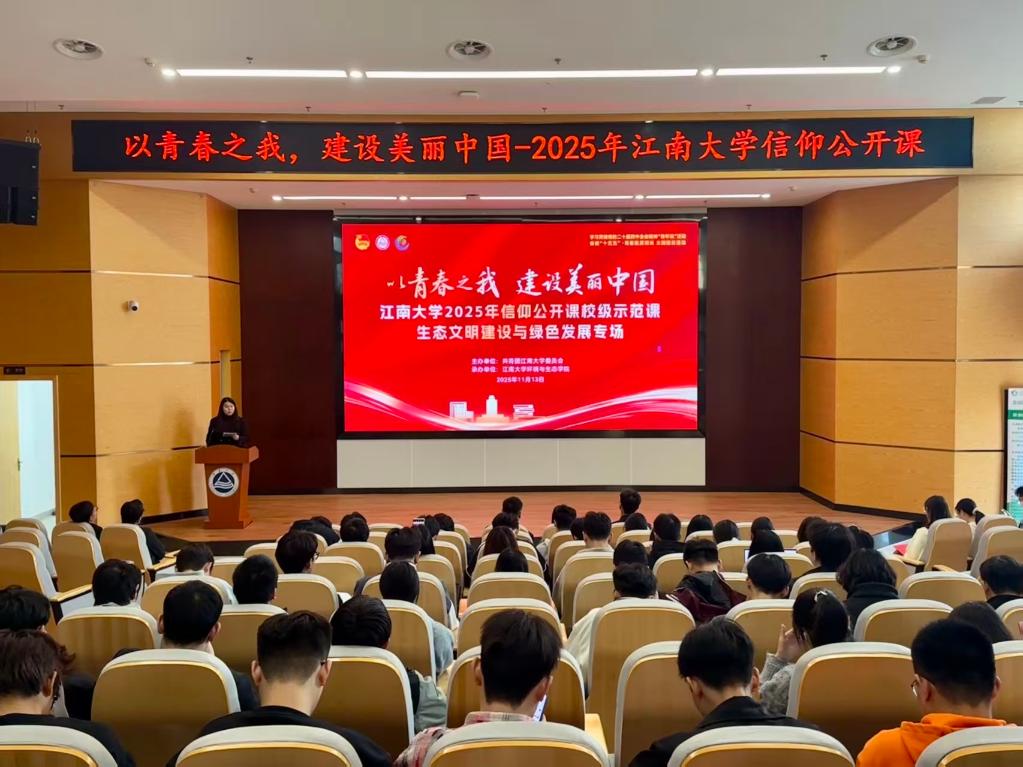 11月13日下午,“以青春之我建设美丽中国”信仰公开课校级示范课——生态文明建设与绿色发展专场在东氿校区钱盘生楼A101报告厅举办。本次活动同步开展学习贯彻党的二十届四中全会精神“青年说”、奋进“十五五”・青春挺膺担当主题团日活动,91网站