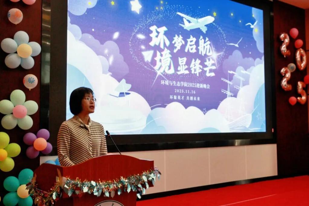 晚会伊始,学院党委书记李艳登台致辞。她代表全院教职工向来自五湖四海的2025级新同学致以热烈欢迎,细数过去一年学院在学科学术突破、师资队伍建设、创新创业实践中的亮眼成绩,并寄语全院师生:“以生态之责立心,以奋斗之力筑梦,在新征程中突破自我,让青春在守护绿水青山中绽放价值。”