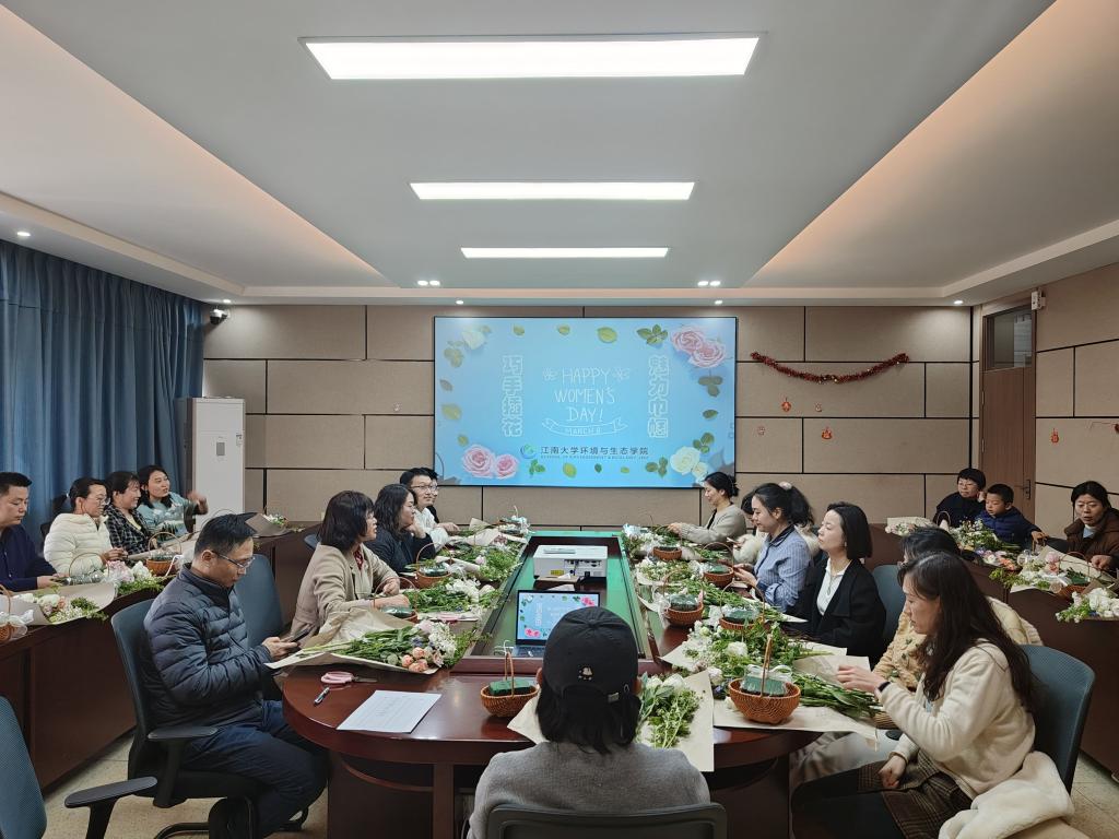 工会组织全体女教职工开展“情暖三月,巾帼花香”插花活动。