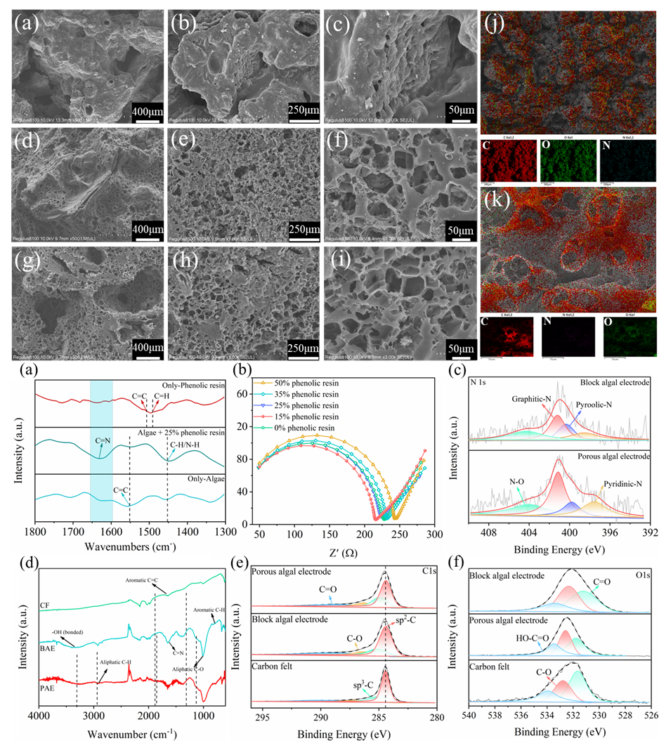 图2. 三维多孔蓝藻电极的理化特性