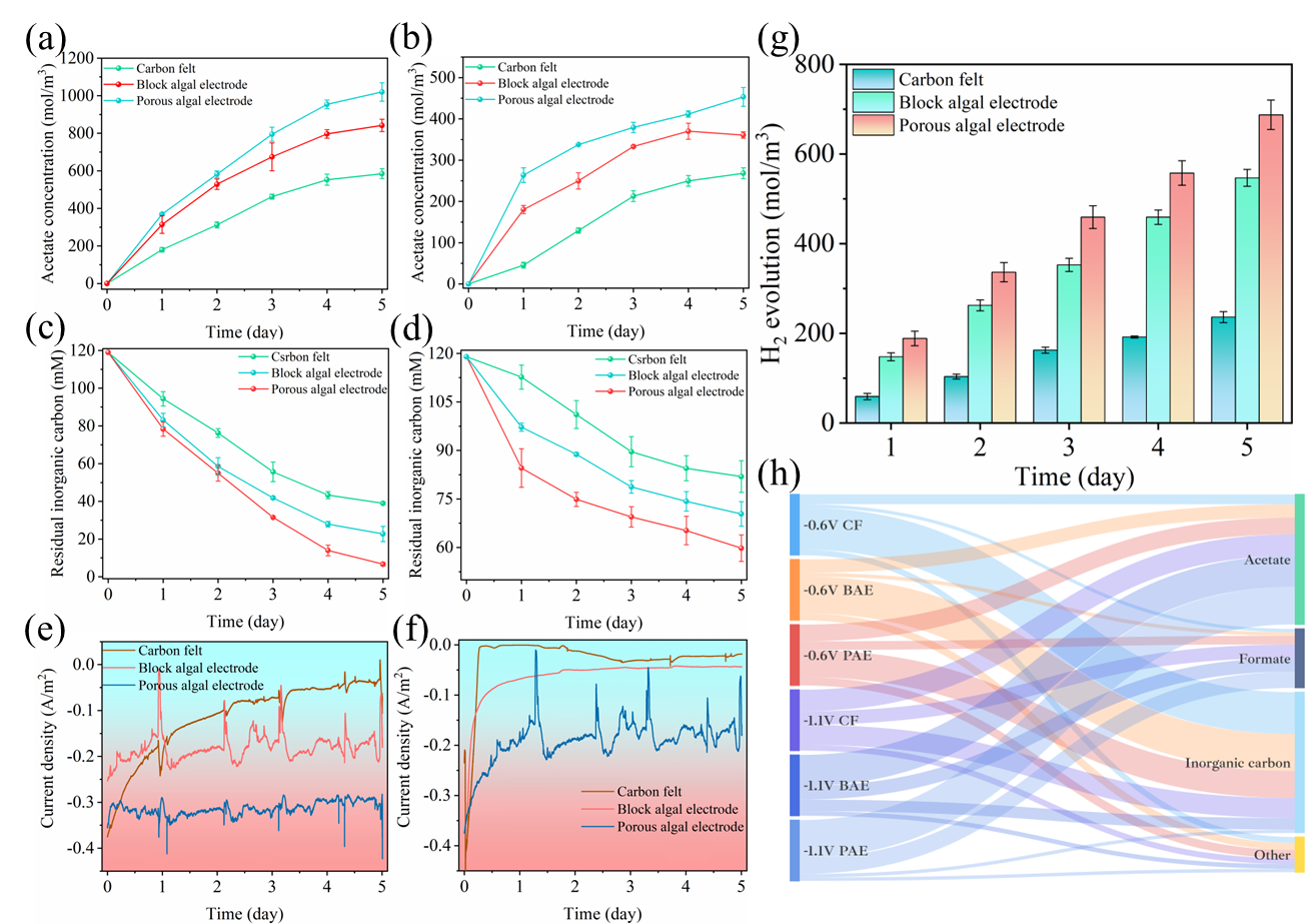 图3. 三维多孔蓝藻电极的微生物电合成表现