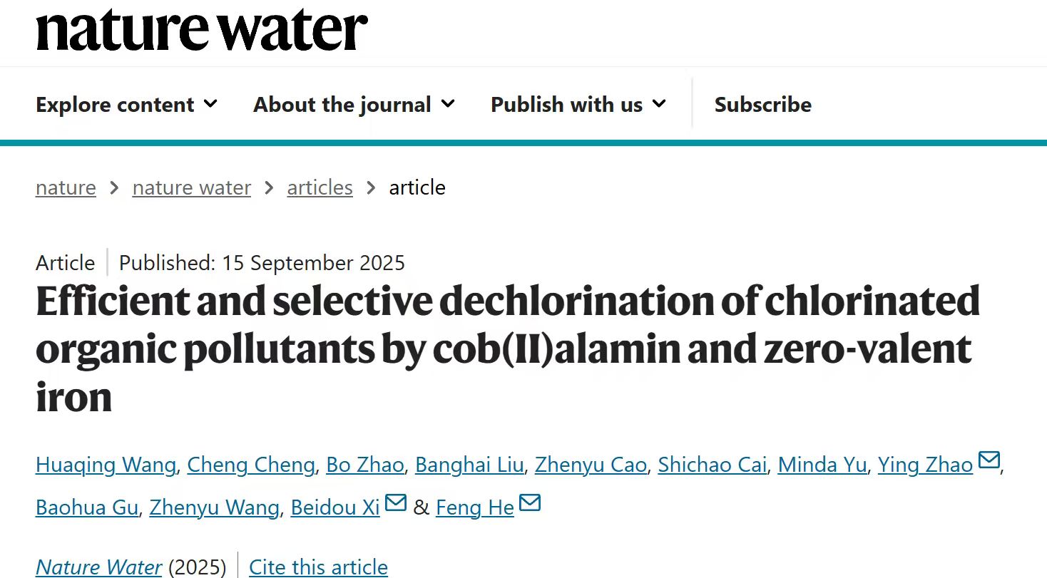 何锋教授团队联合中国环境科学研究院席北斗研究员团队在《Nature Water》(IF:24.1)发表重要研究成果:Efficient and selective dechlorination of chlorinated organic pollutants by cob(II)alamin and zero-valent iron,报道了受天然脱卤酶启发而开发的由维生素B12(钴胺素)与微米零价铁(mZVI)组成的仿生系统,实现了水体氯代有机污染物的高效脱氯和资源回收。
