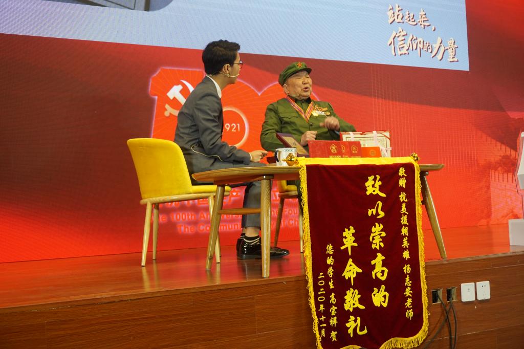 退休副教授、抗美援朝战士杨志安进行了对话访谈。杨志安首先讲述了他的“信仰之根”,受良好成长环境的影响,他从小就在心里埋下了保家卫国的种子,因此未等成年就入伍参军。杨志安铸就信仰之魂,是不畏敌人的强大、作战环境的恶劣,毅然投身于抗美援朝战场中。他强调,对党的信仰与党的正确领导是战争获得胜利的关键。杨志安复员转业后,服从组织安排,执起教鞭,有教无类,关心学生,追随党的引导,经过几十年如一日的努力后,成功入党,桃李满天下,这是杨志安的“信仰之守”。